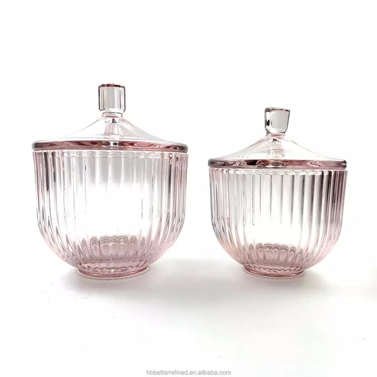 Glass spring pink gray soy geo cut jar for candle making with glass lid crystal glass candy jar with lid wax container