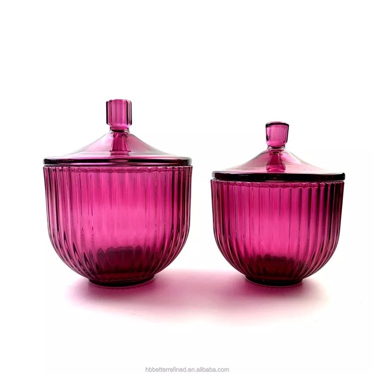 Small glass geo cut circle deep purple shaped jar for candle making with glass lid crystal glass candy jar with lid