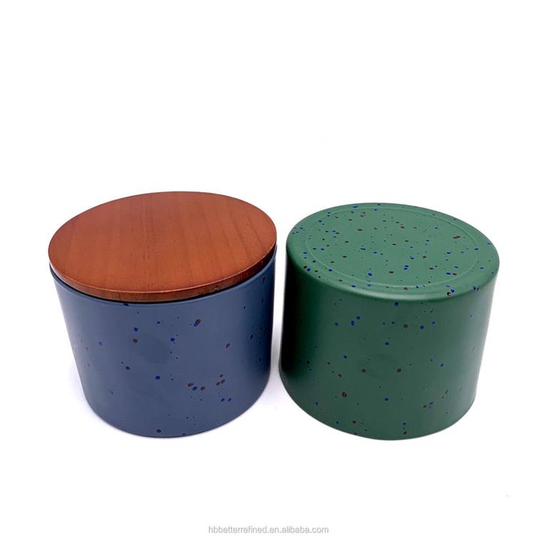 Description | Green wax candle jar with wooden lid metal handle glass wax cup |